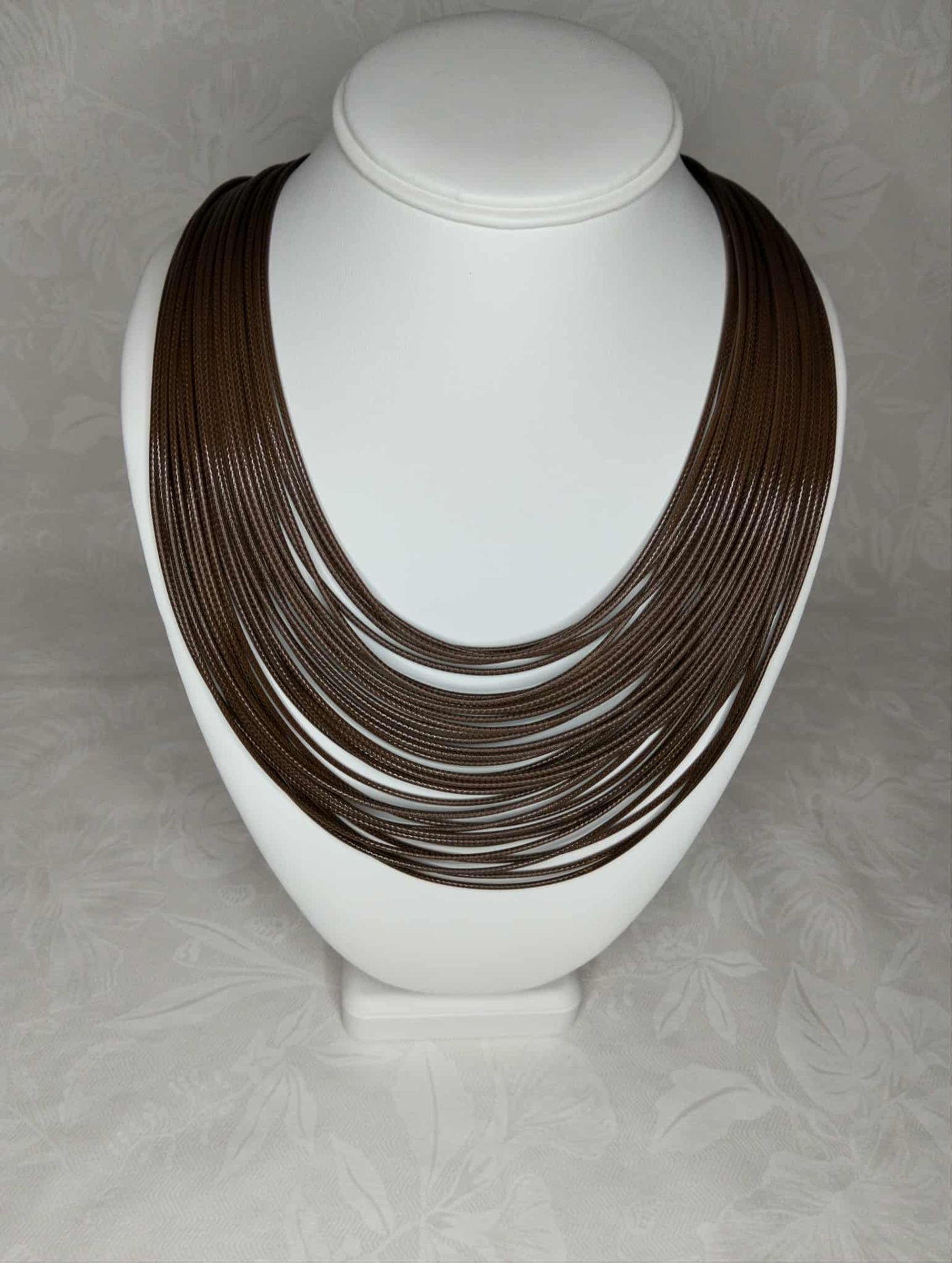 Colares Artesanais 19,90 € Desconto de %. Colar feito com fios sintéticos maçios em castanho Ler mais Quantidade Comprar Contactar Partilhar